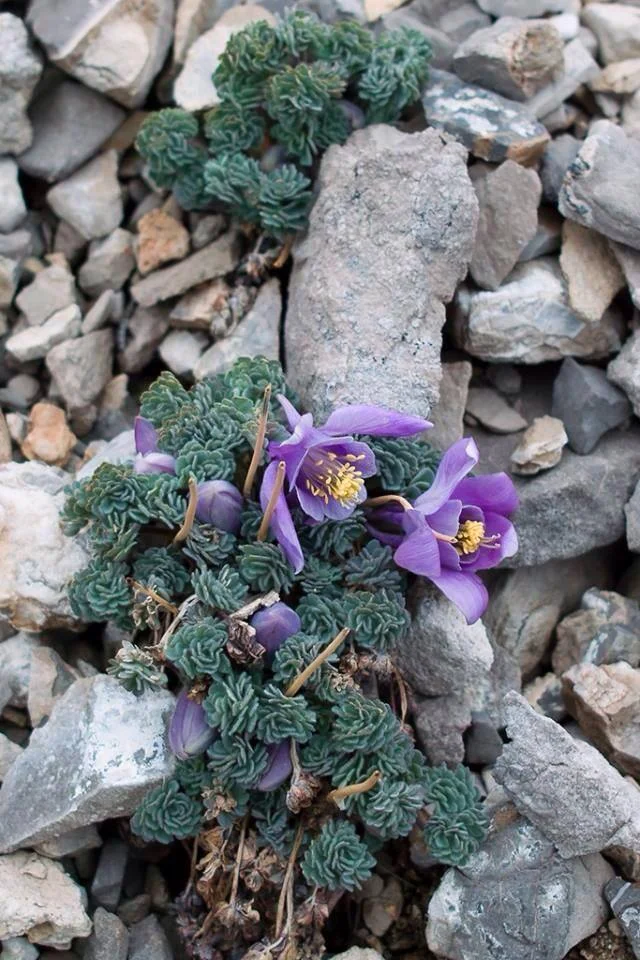 Meet Aquilegia jonesii. This interesting little columbine can be found growing in a narrow range along the northern Rockies. It only grows in alpine and sub-alpine zones, making it quite rare. It has a cushion-like growth form to shield it from the elements but disproportionately large flowers. It is a lucky day if one stumbles across this species!