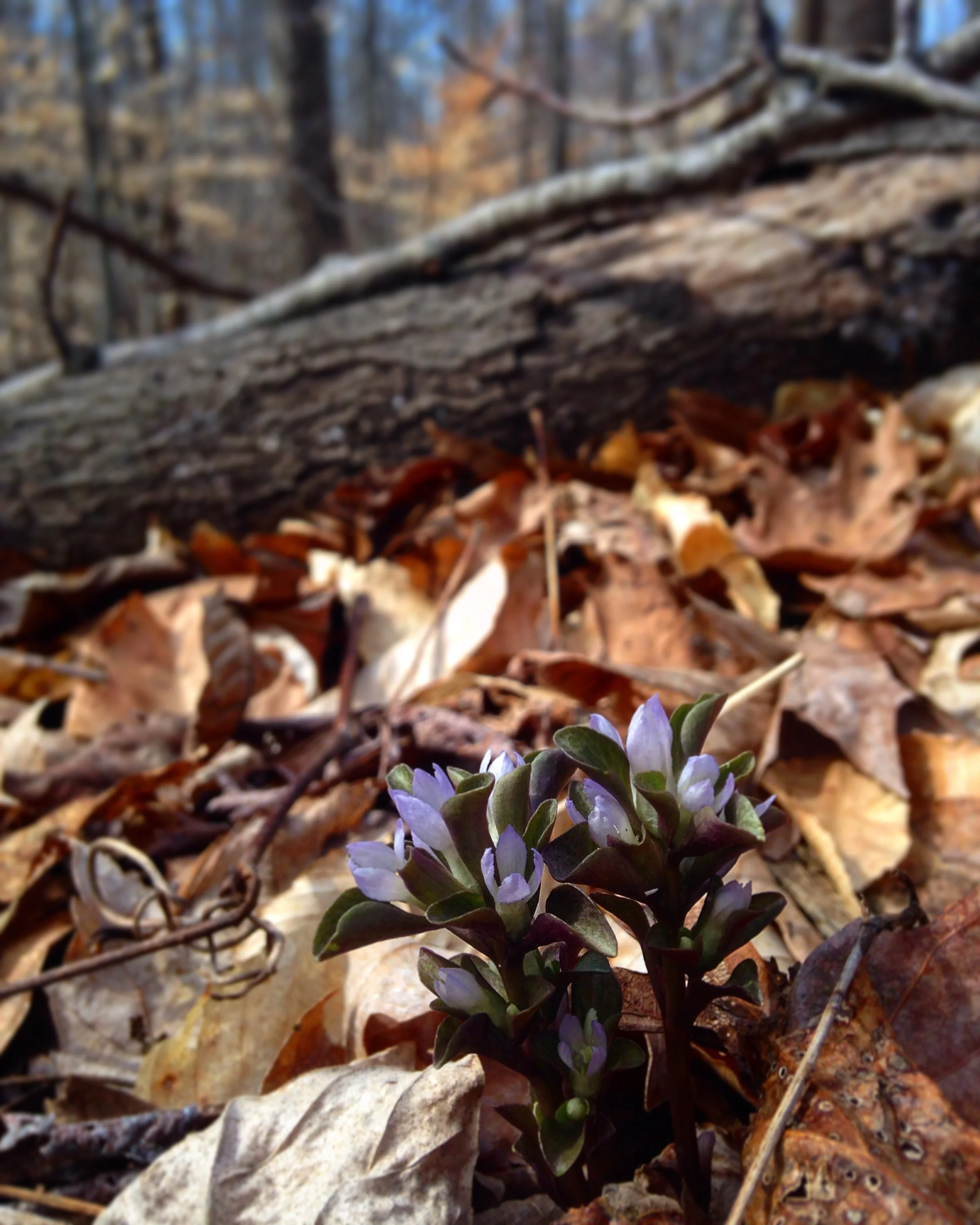 Meet the pennywort gentian (Obolaria virginica). It is a plant of the southeast with its most northerly distribution being around Pennsylvania. I am a little obsessed with gentians so finding this plant is always a special treat. My first encounter left me a bit perplexed by its overall appearance, which is very compact. The leaves and flowers all seemed to be mashed together, competing for space.