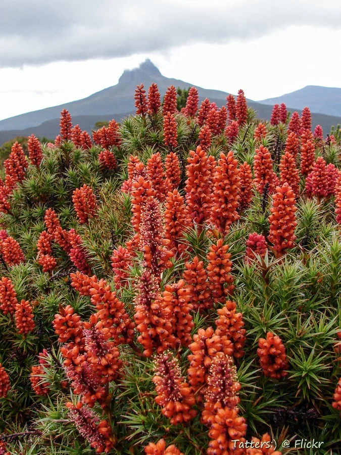 The beauty of Tasmania's honeybush, Richea scoparia, is equally matched by its hardiness. At home across alpine areas of this island, this stout Ericaceous shrub has to contend with cold temperatures and turbulent winds. The honeybush is superbly adapted to these conditions with its compact growth, and tough, pointy leaves. Even its flowers are primed for its environment. They emerge in dense spikes and are covered by a protective casing comprised of fused petals called a "calyptra." Such adaptations are great for protecting the plant and its valuable flowers from such brutal conditions but how does this plant manage pollination if its flowers are closed off to the rest of the world? The answer lies in a wonderful little lizard known as the snow skink (Niveoscincus microlepidotus).