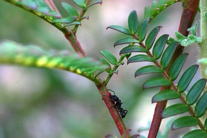 Acacias and ants have quite the relationship. Acacias protect themselves by offering ants hollow spines and branches where their colonies can live. They even sweeten the deal via extrafloral nectaries. These are glands on the stems that secrete nectar that the ants eat. In some ant species, this is their only source of food. Needless to say, the ants become highly protective of their acacia trees. They readily attack herbivores and even go as far as to prune away vegetation that may interfere with their host. This seems like a pretty straight forward mutualistic relationship, right?