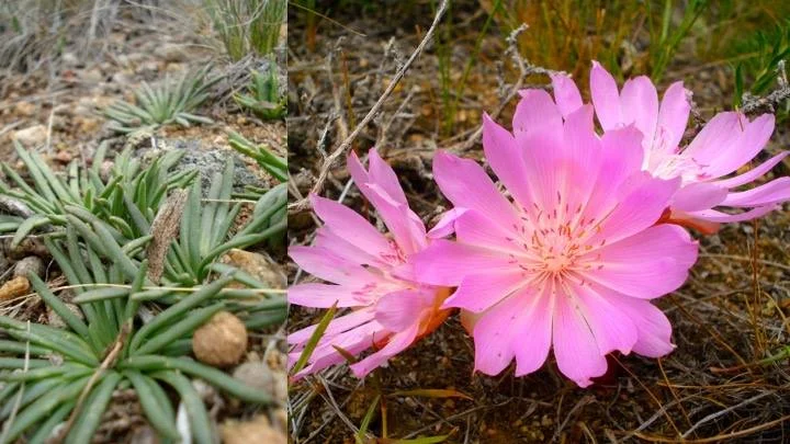 As the flower buds mature, the leaves begin to senesce. Very often you will find flowers and no leaves, which may lead some to believe they have witnessed two different plants. Either way, the flowers are quite the spectacle. Blooming time varies depending on latitude and elevation but between the months of April and June, bitterroot enters reproductive mode. If you're a fan of big flowers on small plants, then this species is right up your alley. The 2 inch flowers are borne flush with the ground and vary in color from stark white to bright pink. Their display is made all the more magnificent by the fact that bitterroot is often found growing in bare soil, devoid of other flowering forbs.