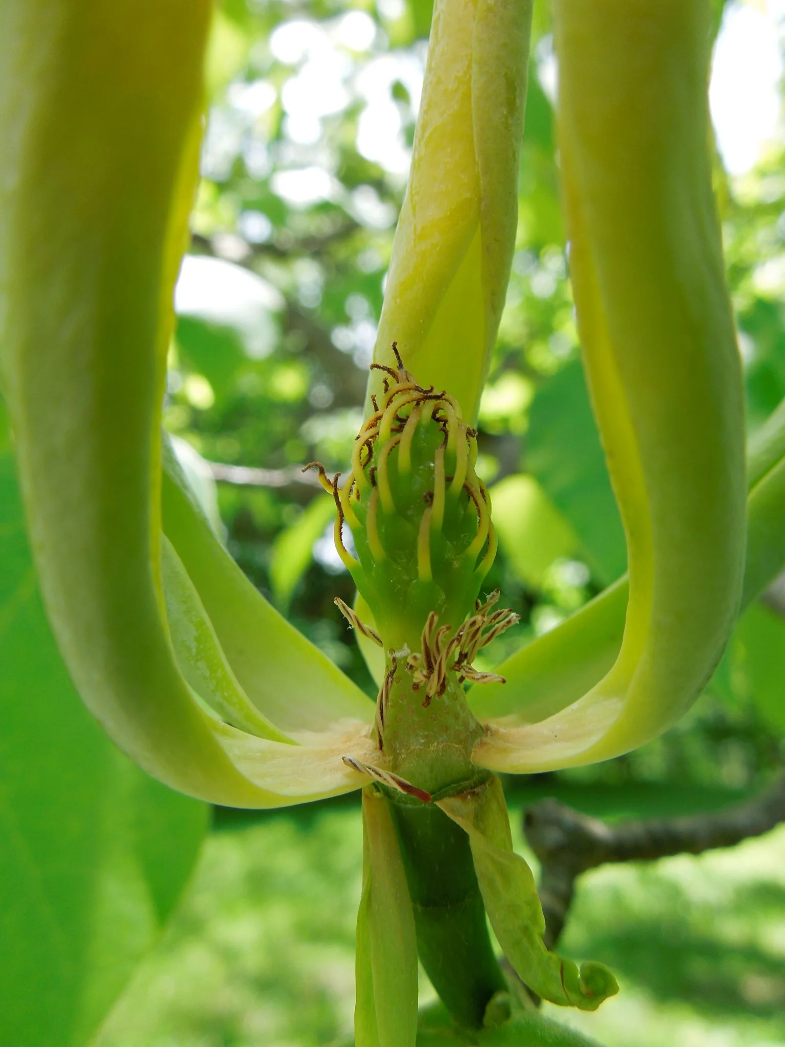 Magnolias first came on to the scene somewhere around 95 million years ago. Although they are not representative of what the earliest flowering plants may have looked like, they do offer us some interesting insights into the evolution of flowers. To start with, the flower bud is enclosed in bracts (modified leaves) instead of more differentiated sepals. The "petals" themselves are not actually petals but tepals, which are also undifferentiated. The most striking aspect of magnolia flower morphology is in the actual reproductive structures themselves.