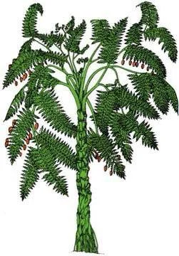 As atmospheric CO2 levels plummeted and continents continued to shift, the climate was growing more and more seasonal. This was bad news for the scale trees. All evidence suggests that they were not capable of keeping up with the changes that they themselves had a big part in bringing about. By the end of the Carboniferous, Earth had dipped into an ice age. Earth’s new climate regime appeared to be too much for the scale trees to handle and they were driven to extinction. The world they left behind was primed and ready for new players. The Permian would see a whole new set of plants take over the land and would set the stage for even more terrestrial life to explode onto the scene.