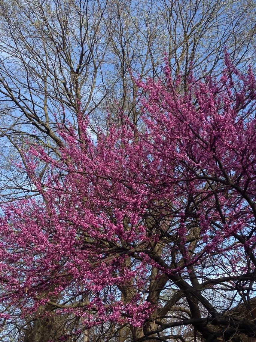 One of the most interesting aspects of the redbuds are their flowers. We have already established that they are very beautiful but their development makes them even more interesting. You have probably noticed that they are not borne on the tips of branches as is the case in many flowering tree species. Instead, they arise directly from the trunks and branches. This is called "cauliflory," which literally translates to "stem-flower." In older specimens, the trunks and branches become riddled with bumps from years of flower and seed production.