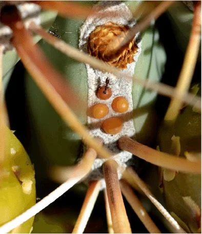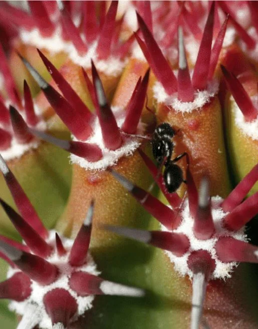 Plants frequently have a friend in ants. Spend some time observing ants at work and it’s east to see why. These social insects have numbers and strength on their side. Give ants a reason to be invested in your survival and they will certainly see to it that nothing threatens this partnership. For cacti, this involves the secretion of nectar from specialized tissues called extrafloral nectaries.