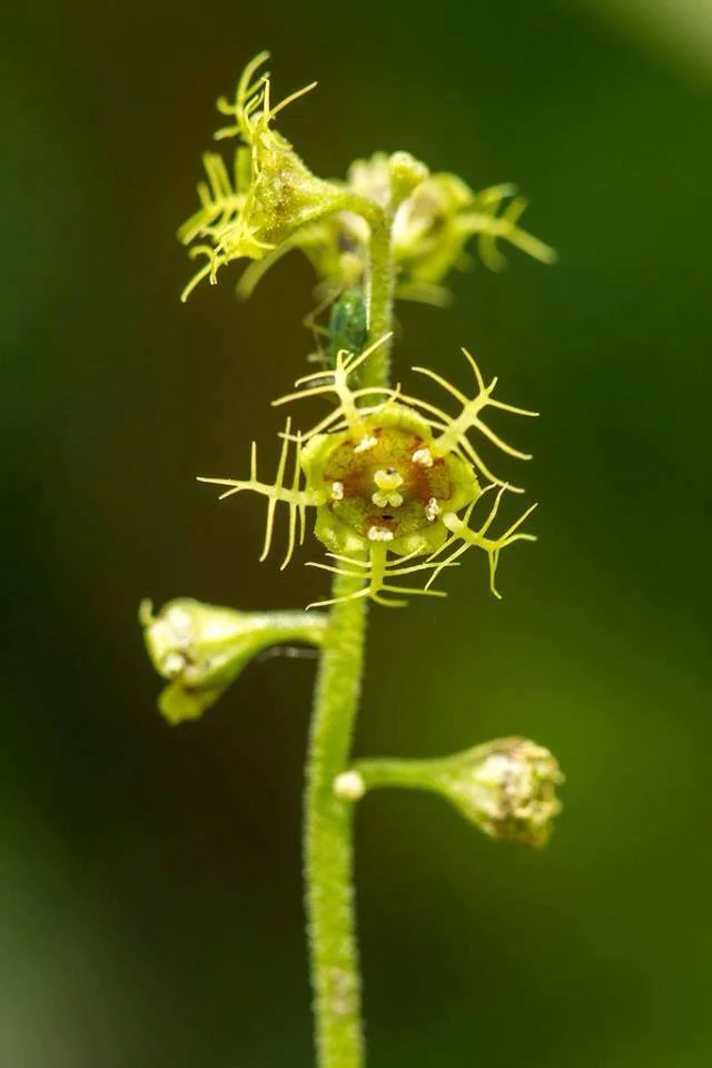 Pollinators, for good reason, are one of the largest selective pressures on flower evolution. As flowers evolve to cater to a specific kind of pollinator, be it a bird, a bee, or even fungus gnats, we refer to it as a pollinator syndrome. I have been enchanted by the flowers of the genus Mitella ever since I stumbled across them. As you can see in the picture, they are generally saucer shaped and have snowflake-like appendages protruding from their rim. I wondered, what kind of pollinator syndrome would produce such delicate beauty?