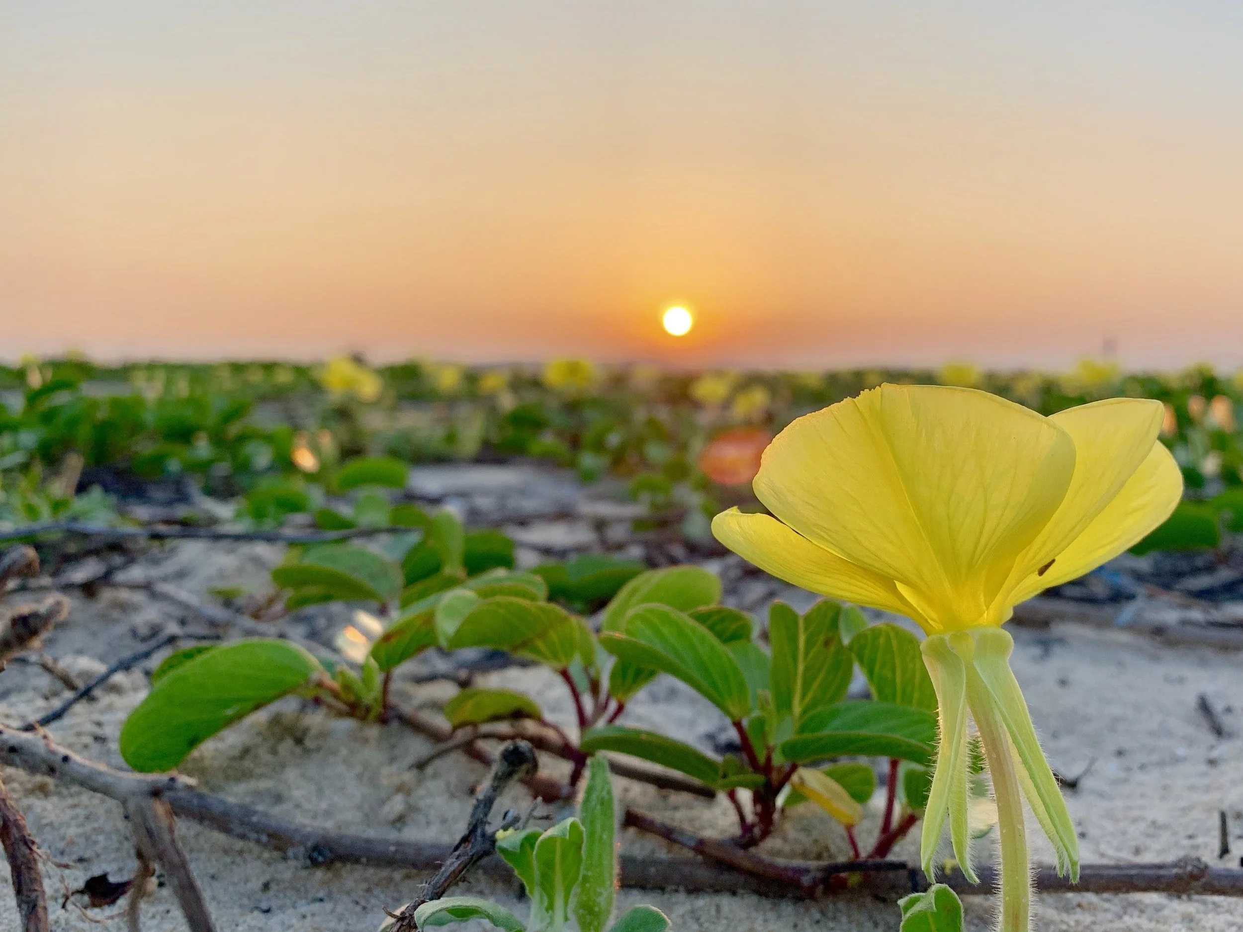 The beach evening primrose (Oenothera drummondii) is native to southeastern North America. It is pollinated by bees during the day and by moths at night. Like most members of its genus, O. drummondii produces relatively large, showy flowers. That doesn’t mean it steals all of the attention though. Competition for pollinators can be stiff among flowering plants. To sweeten the deal a bit, O. drummondii also produces a fair amount of nectar.