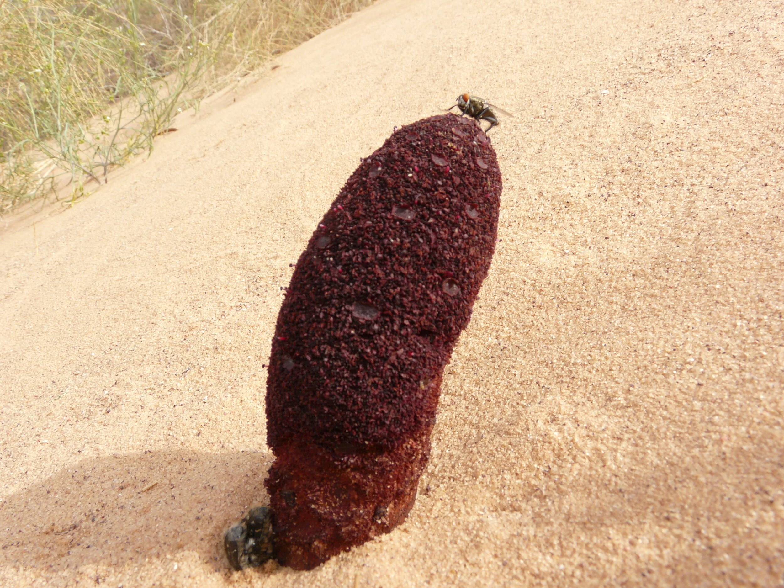 Meet Cynomorium coccineum aka the Maltese mushroom. Despite the common name and overall appearance, this is not a fungus. It is indeed a plant. Cynomorium coccineum is a holoparasite. It produces no chlorophyl of its own and relies solely on a host plant for all of its water and nutrient needs. It is said to parasitize the roots of halophytes or salt-loving plants and thus, is most commonly found growing in salt marshes in addition to dry, sandy habitats in coastal areas.